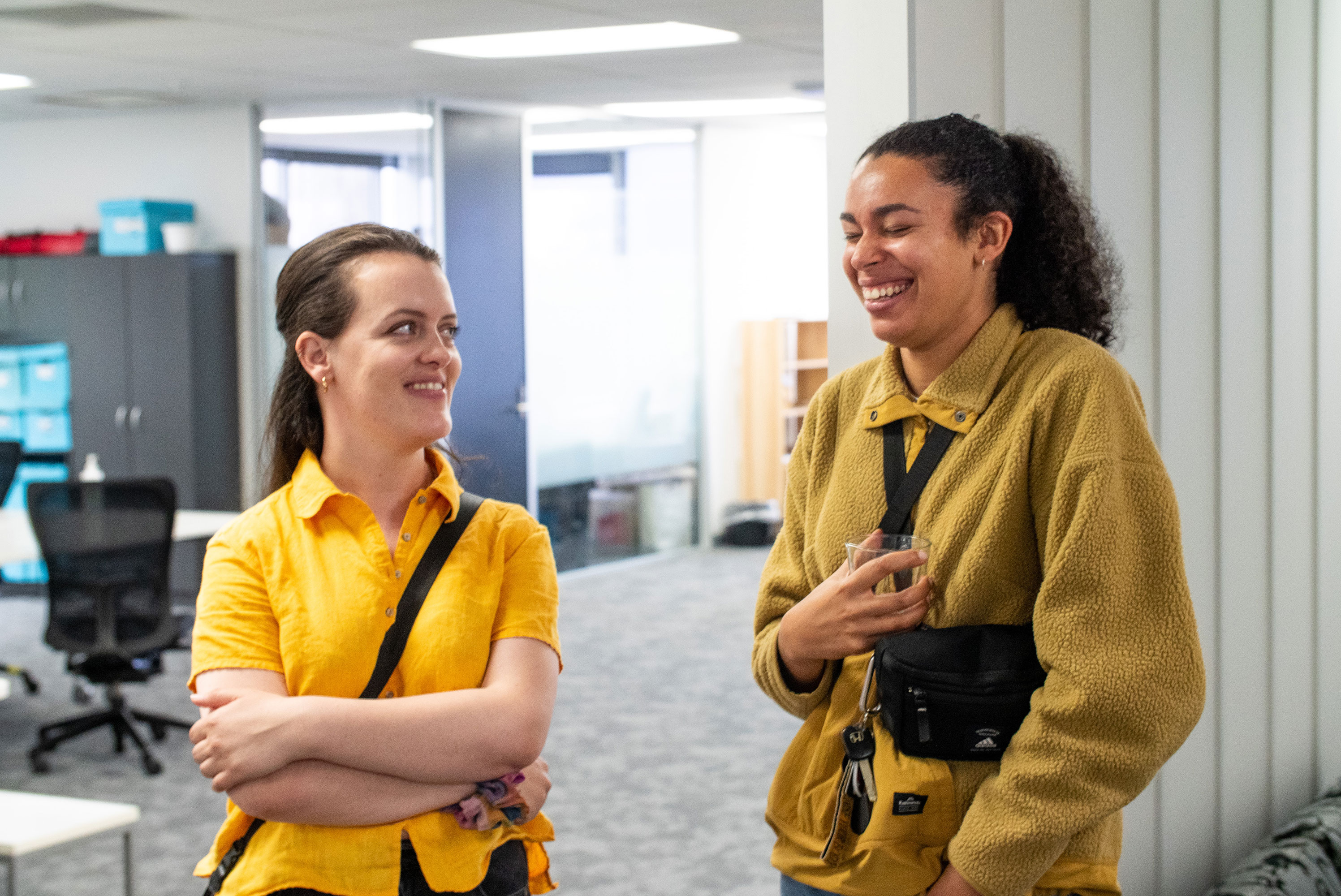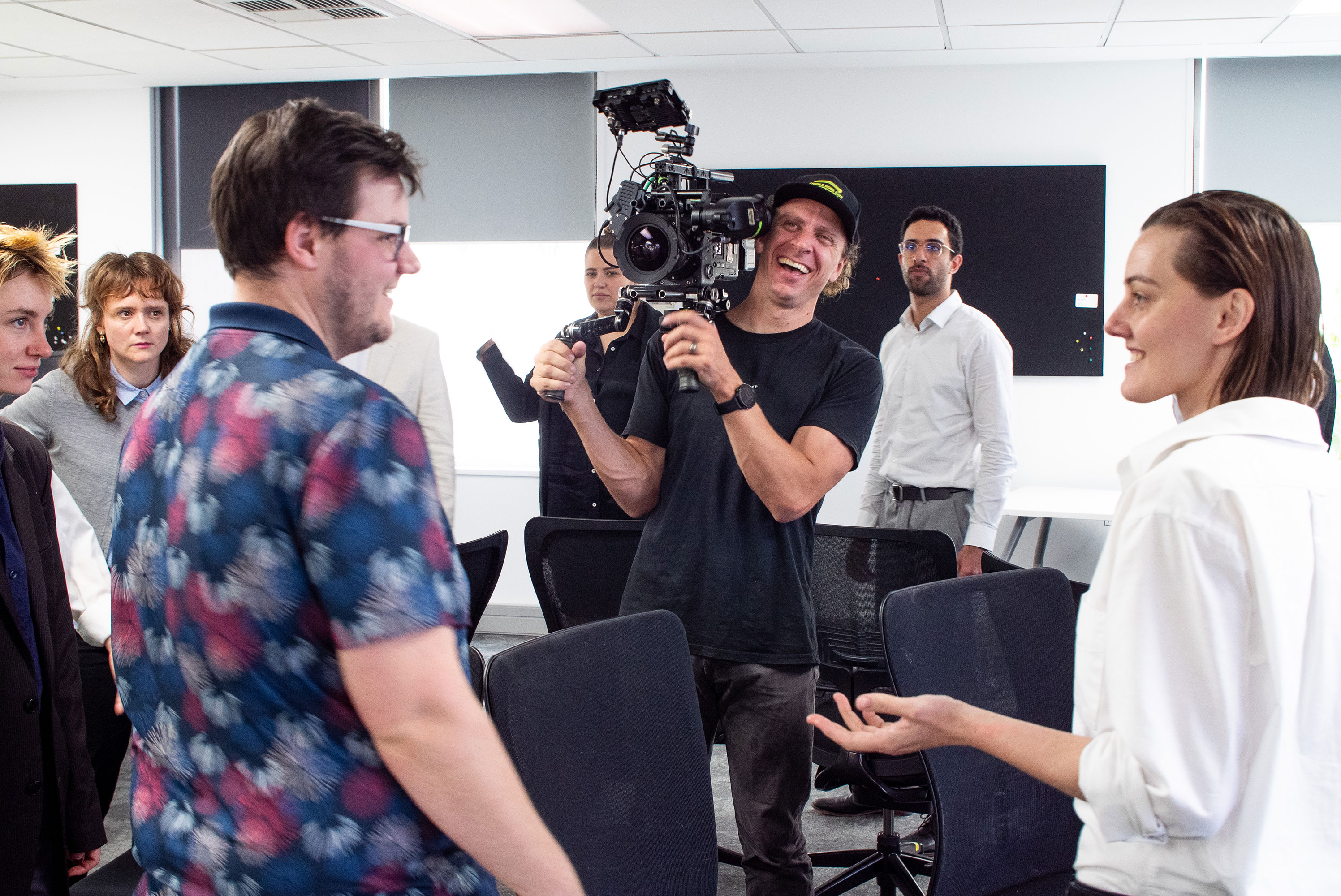 Story-based pieces are where we thrive. We wanted to capture that uncomfortable office dynamic of relationships with people you see every day but wouldn’t have been friends with otherwise. When stuck in adverse conditions (minimal windows, fluorescent lights, too much coffee), tensions start to rise, and you begin to turn on each other. All the actors that feature are dear friends, and they truly brought the chaos we envisioned to life.Where would we be without our mates?
